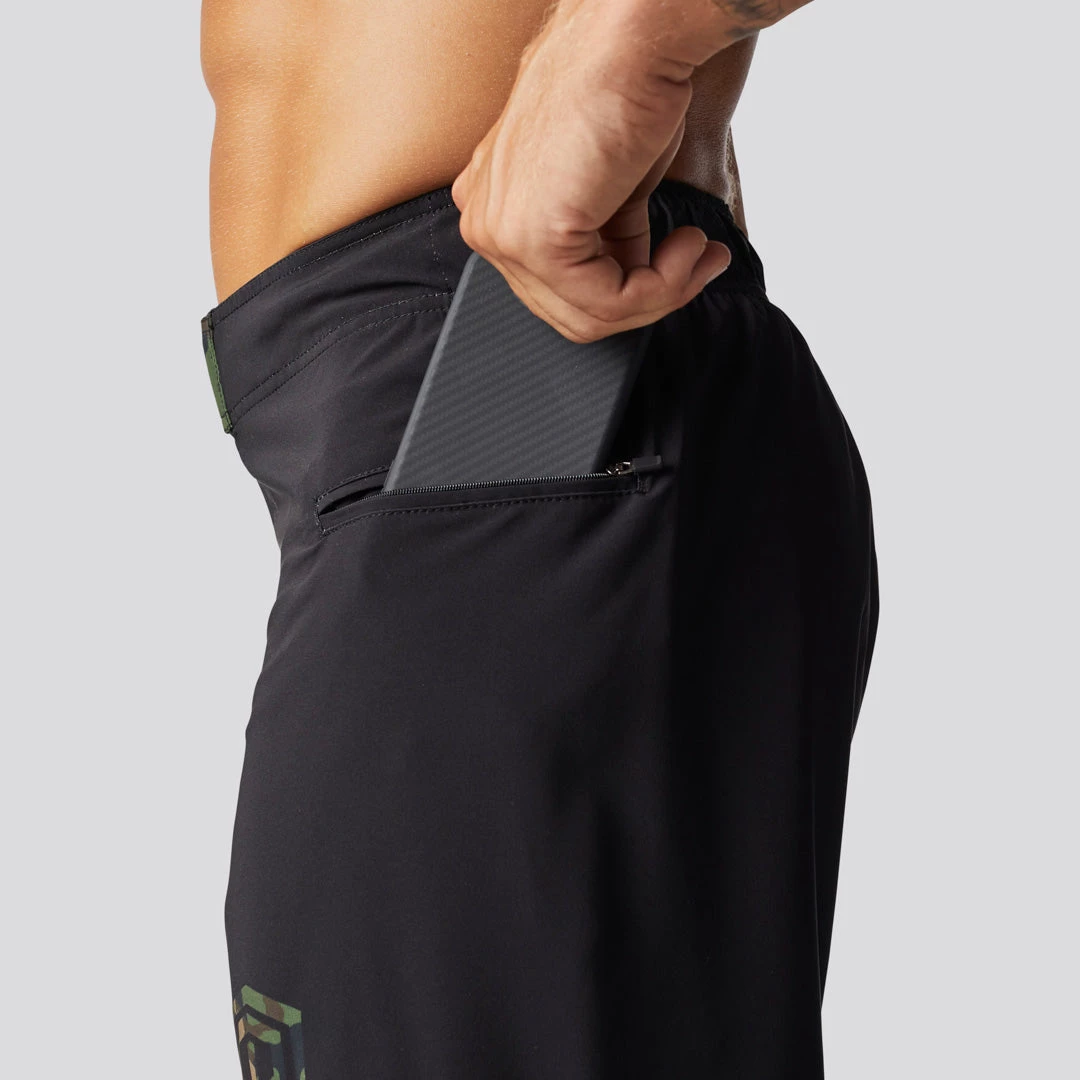 The American Defender Shorts 3.0 took all the great features from the 2.0 but with two modifications. First, we took the back half of the waist band and added elastic, allowing you to still have the clean, fitted look in the front, while also having some stretch in the back for an even better fit. We also took a half inch off of the inseam, placing it slightly higher above the knee than the 2.0’s. Most 3.0 styles are also available in both the tie closure and velcro closure, depending on your own preference! With two discreet zipper pockets, you can carry all of your belongings from the gym, to the beach, or to your next sparring session. The lightweight, quick dry fabric and spandex crotch panel give you the perfect balance of performance and comfort. We have also hidden a motivational quote inside the right leg for when you need that extra bit of motivation to go out there and GET AFTER IT!