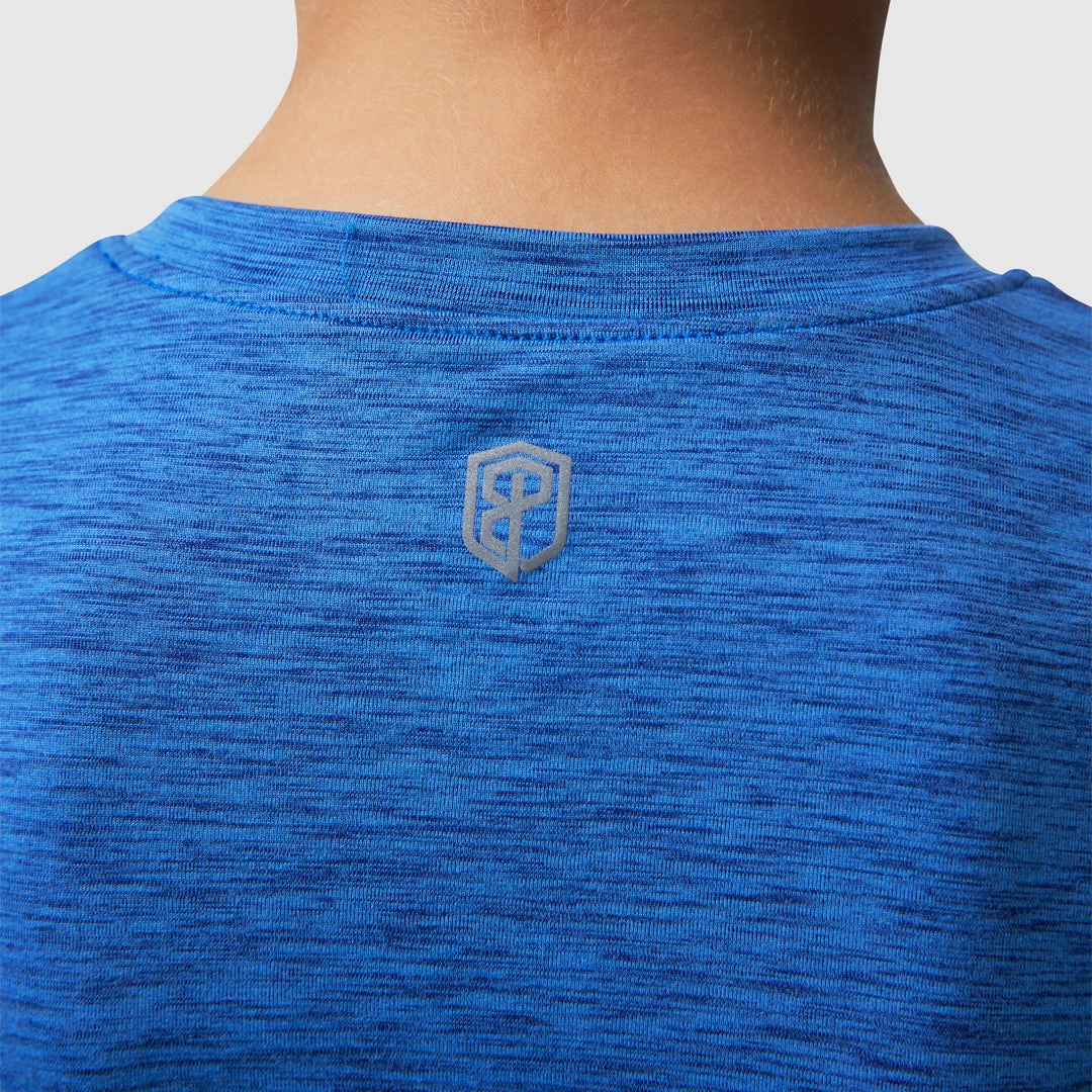 The Primitive Kids Collection includes our Boys Athleisure Tee. With this boy’s royal blue athletic t-shirt, it’s all about the fabric. We hand-picked one of our favorite fabrics to date to develop a shirt that can be worn to play, exercise, go to school or hang out with your friends and family. The 88% Polyester, 12% Spandex ultra-soft blend gives this dark blue shirt for kids enough give that you won’t feel restricted, and you’ll be living in total comfort.