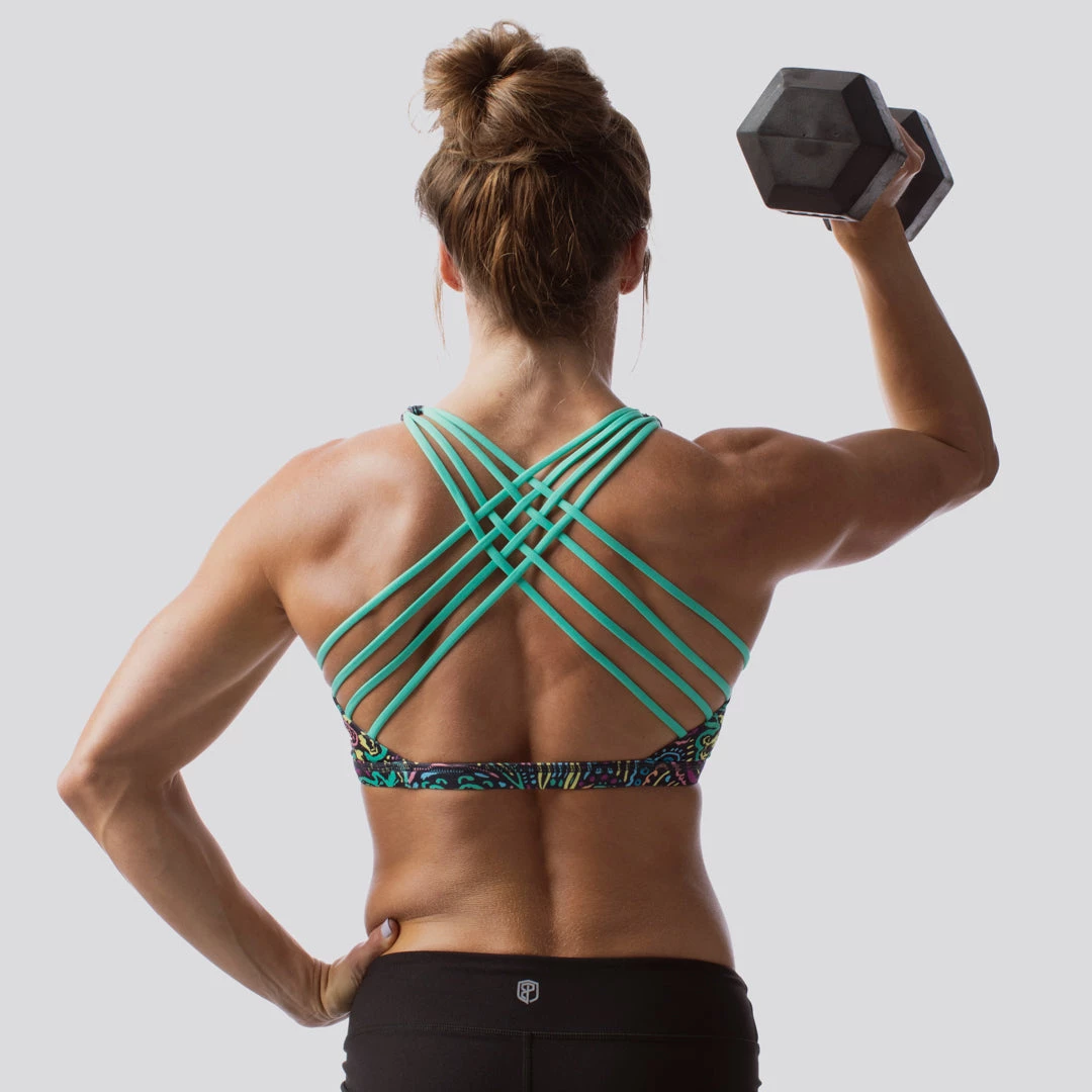 Our wildly popular Vitality Bras offer the perfect balance between softness and elasticity, making this the most comfortable sports bra you will ever wear. They were designed to fit the everyday athlete and offer maximum comfort, even for a more muscular feminine build. Our Vitality Bra’s custom nylon/lycra fabric blend allows this bra to move with you during your toughest workouts, all while bringing fashion and style right along with it! They also come with removable pad inserts for maximum support. Buy yours now and thank us later![break]