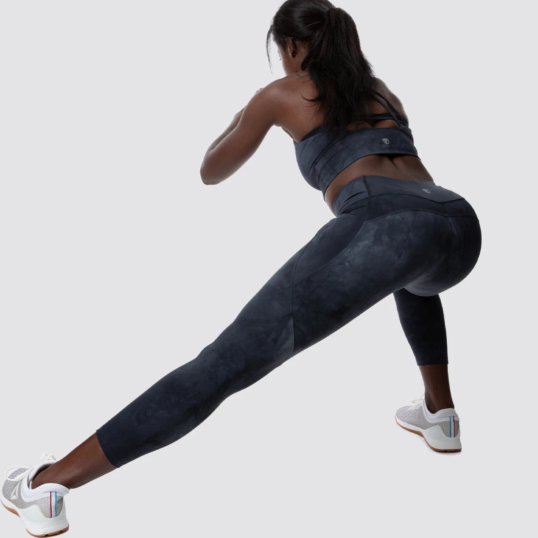 These leggings feature a brand new tie dye material! They have a high waist and wide waistband that will keep you covered. These leggings have pockets on each outer thigh and are a 7/8 length and do not have a front seam.