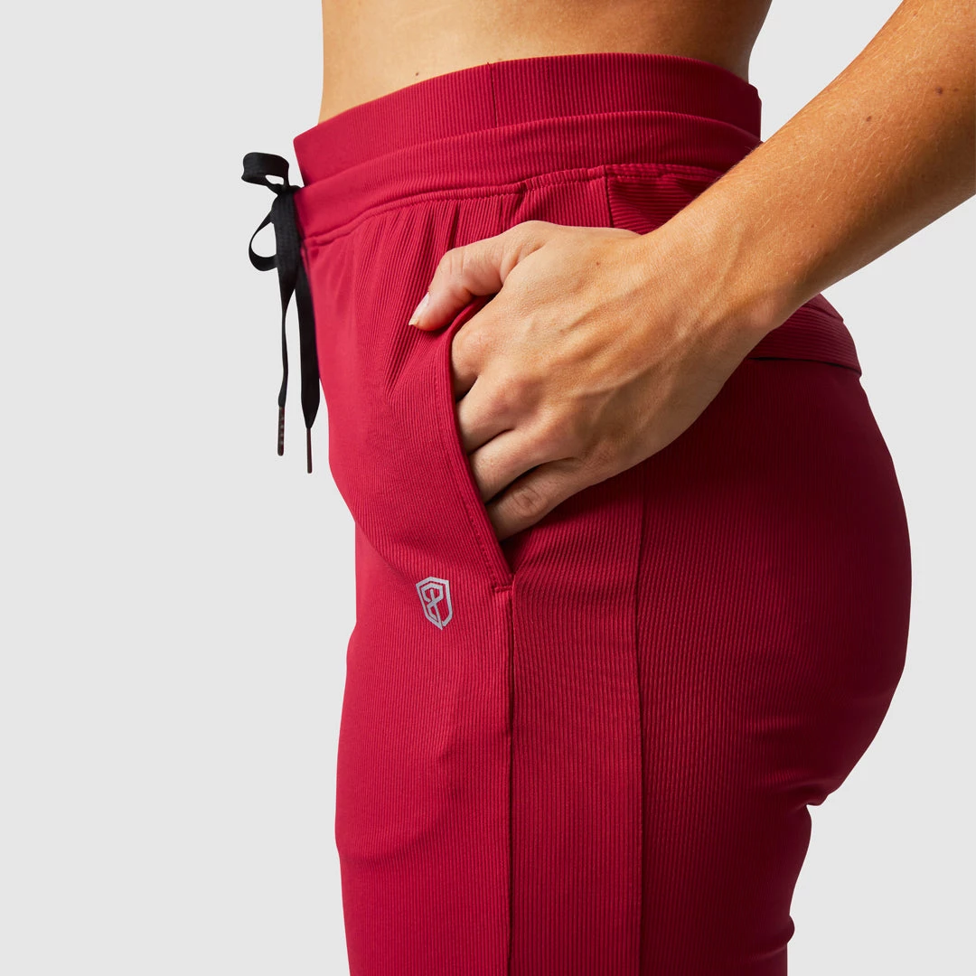 The Recovery Joggers feature a fit similar to our Rest Day Joggers. These cranberry joggers with pockets feature a lightweight ribbed and stretchy material, four pockets and a drawstring waist. We have all of the bases covered with our Recovery Joggers!