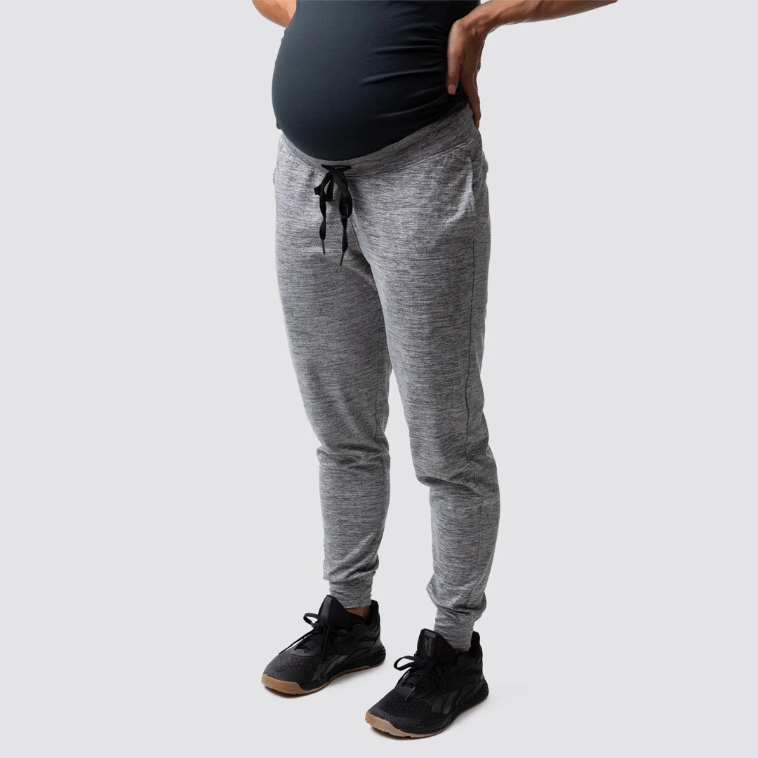 We took our best selling Rest Day Jogger and made them for our maternity line! Say hello to the jogger you will find yourself grabbing day after day when you want comfort but also style. With a soft, wide band made for wearing below the belly, extremely soft material and a fitted cut, these women’s grey maternity joggers will definitely get their use. Invest in a pair of pregnancy jogger pants today!