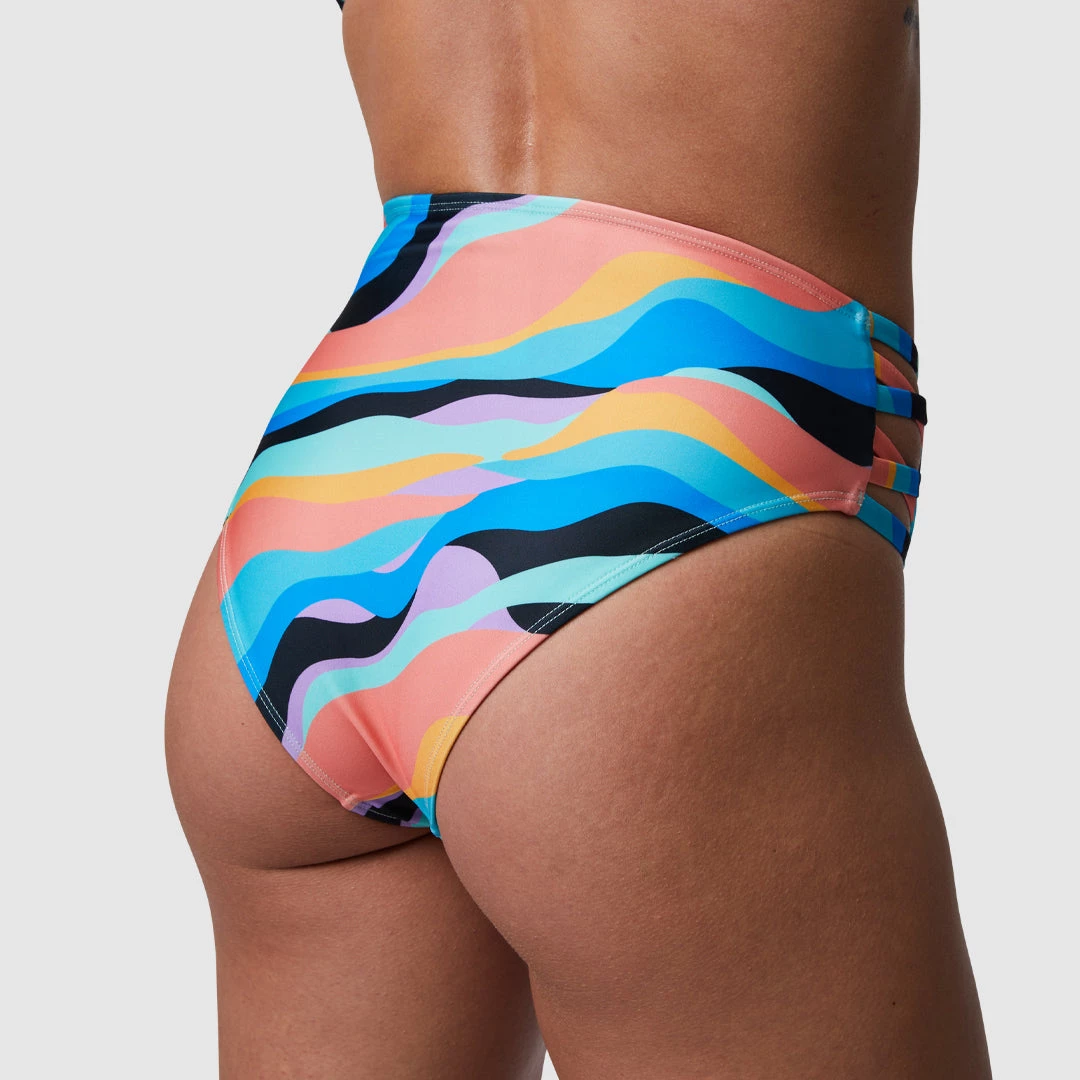 The Sandbar Bikini Bottoms feature a high-rise waist and a cheekier coverage in the back. The sides of these high-waisted bathing suit bottoms have 6 strings for a fun and cute detail. Create a complete look for the beach with our Ripple bikini top.