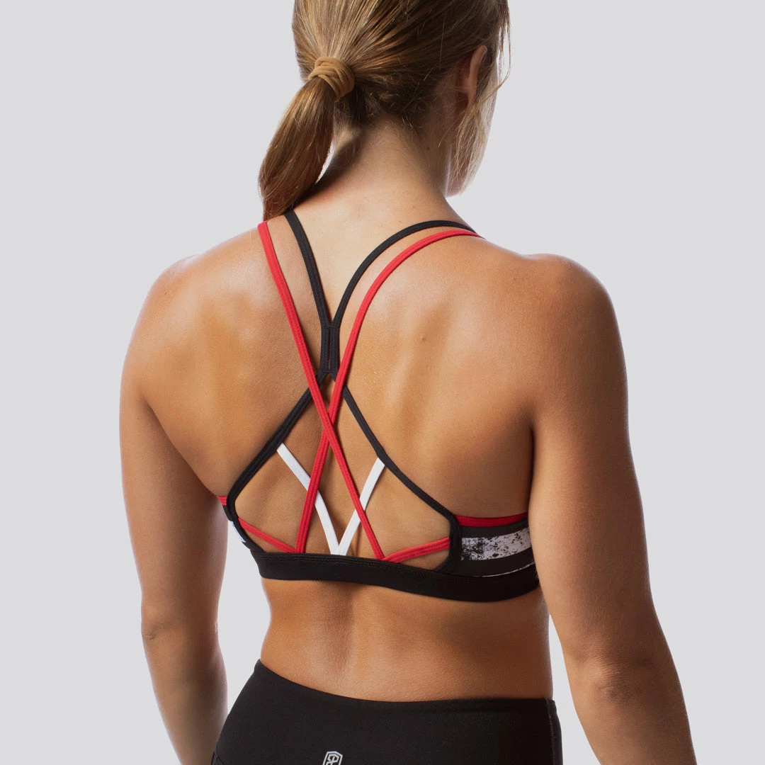 Our Warrior Sports Bra is perfect for the gym or the yoga studio. This patriotic sports bra features a Thin Red Line design. Offering the perfect amount of coverage and support for anything you throw at it- from double-unders and pull ups to the Warrior 2 pose, this bra has got you covered!