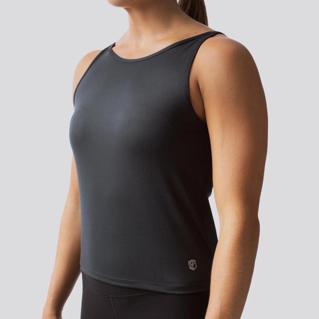 This tank features an open, breathable back, higher front neckline and now the 2.0 is in our signature athleisure fabric. The back features a horizontal back strap that is adjustable. Like all of our Athleisure pieces, this black backless top can be worn to the gym or out on the town! Show off your favorite Born Primitive Bra in this open back tank top!