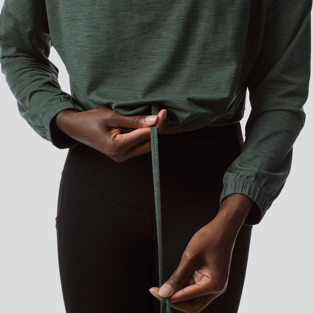 We took our popular Athleisure Hoodie and gave it a cute tie waist to add a feminine touch. Our favorite athleisure fabric can perform for you at the gym but can also be worn out of the gym. The 88% Polyester, 12% Spandex ultra-soft blend gives this women’s hooded sweatshirt enough give so you won’t feel restricted, and you’ll be living in total comfort.
