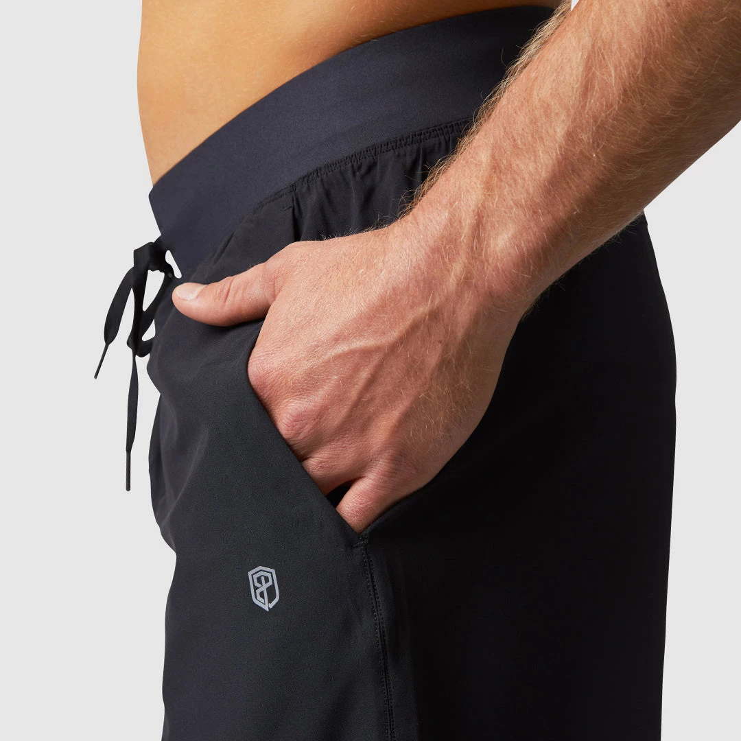 The Mission Shorts are part of our Bethany Shadburne Collection. It was curated by Bethany herself and features a lightweight fabric, exterior drawstring and an 8″ inseam. These men’s black gym training shorts have dual front pockets and a rear zipper pocket.