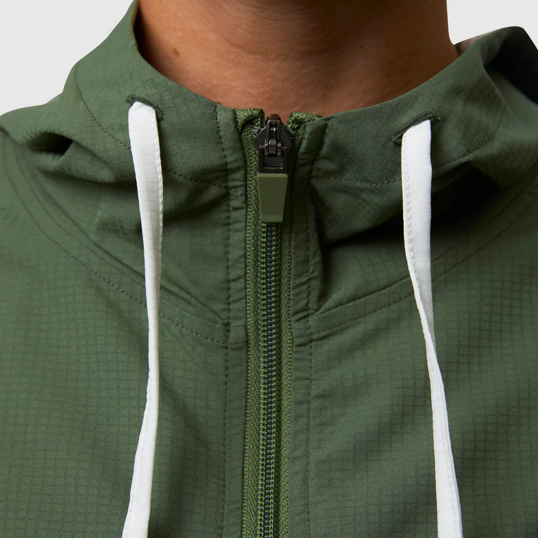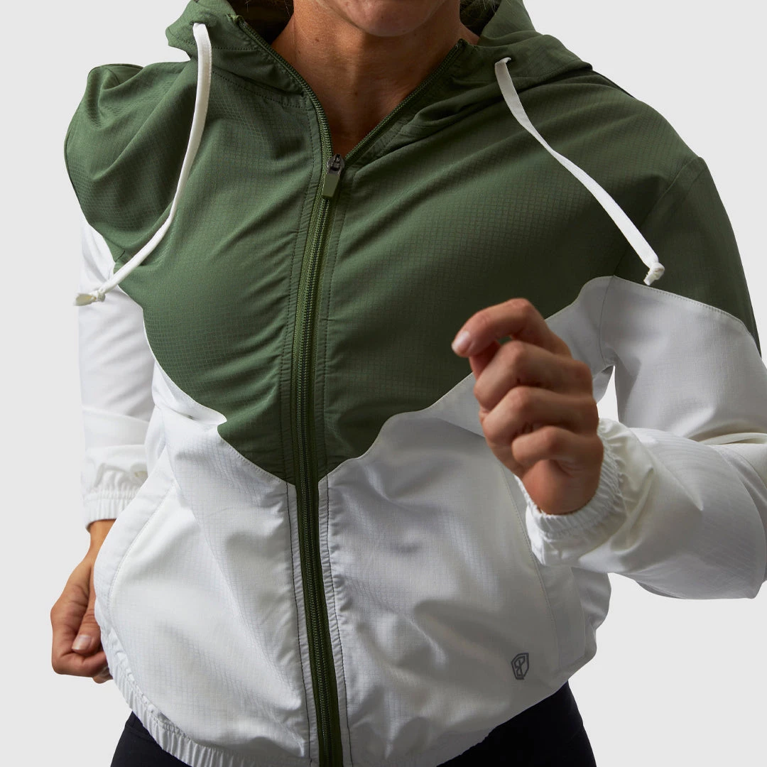 The Ohana Jacket is a part of our Bethany Shadburne Collection. Curated by Bethany herself, it features a retro color-blocked design. This light weight jacket features a full-length zipper, dual front zipper pockets, drawstring hood, and a two-toned color design of white and basil. With an elastic bottom, expect this jacket to be close fitting.