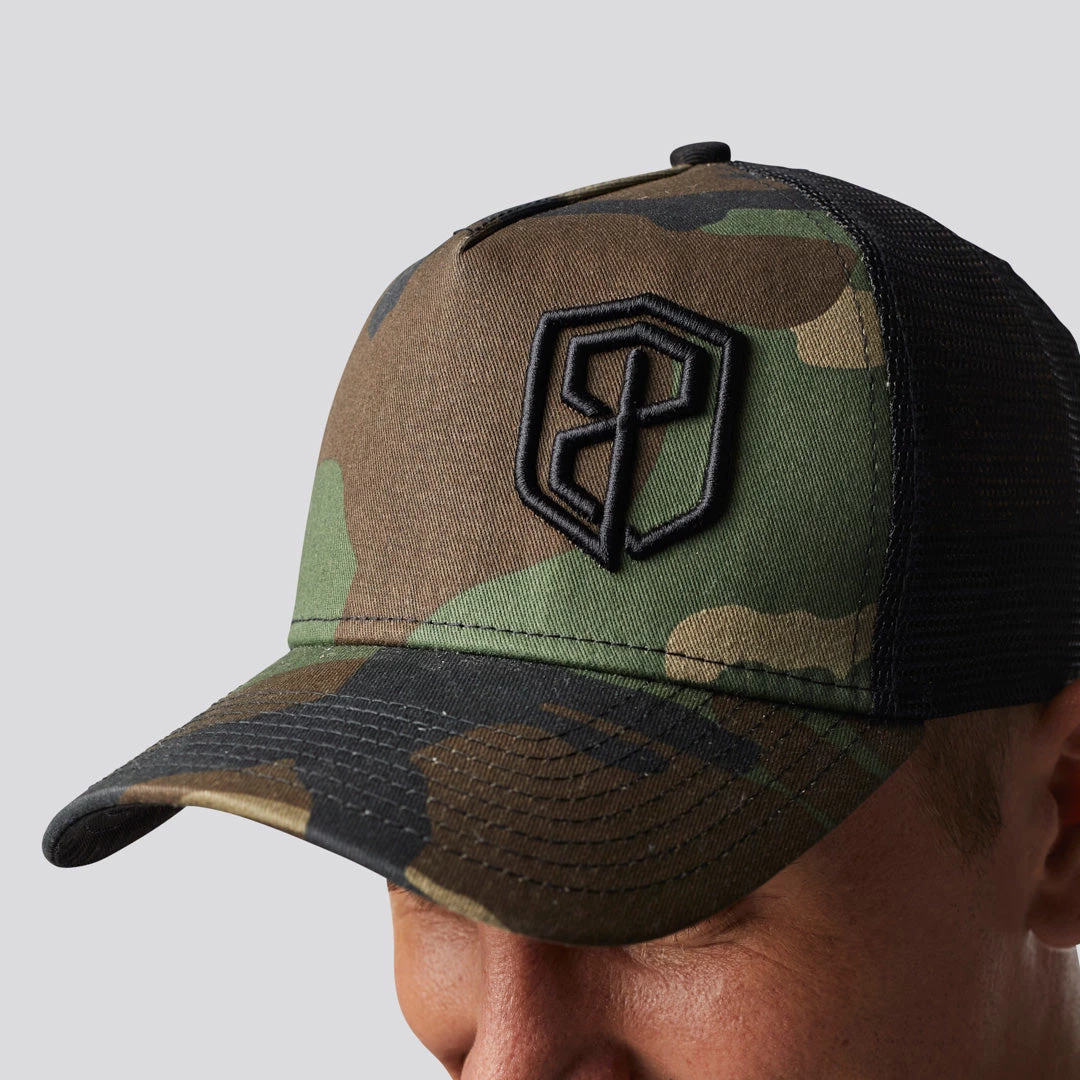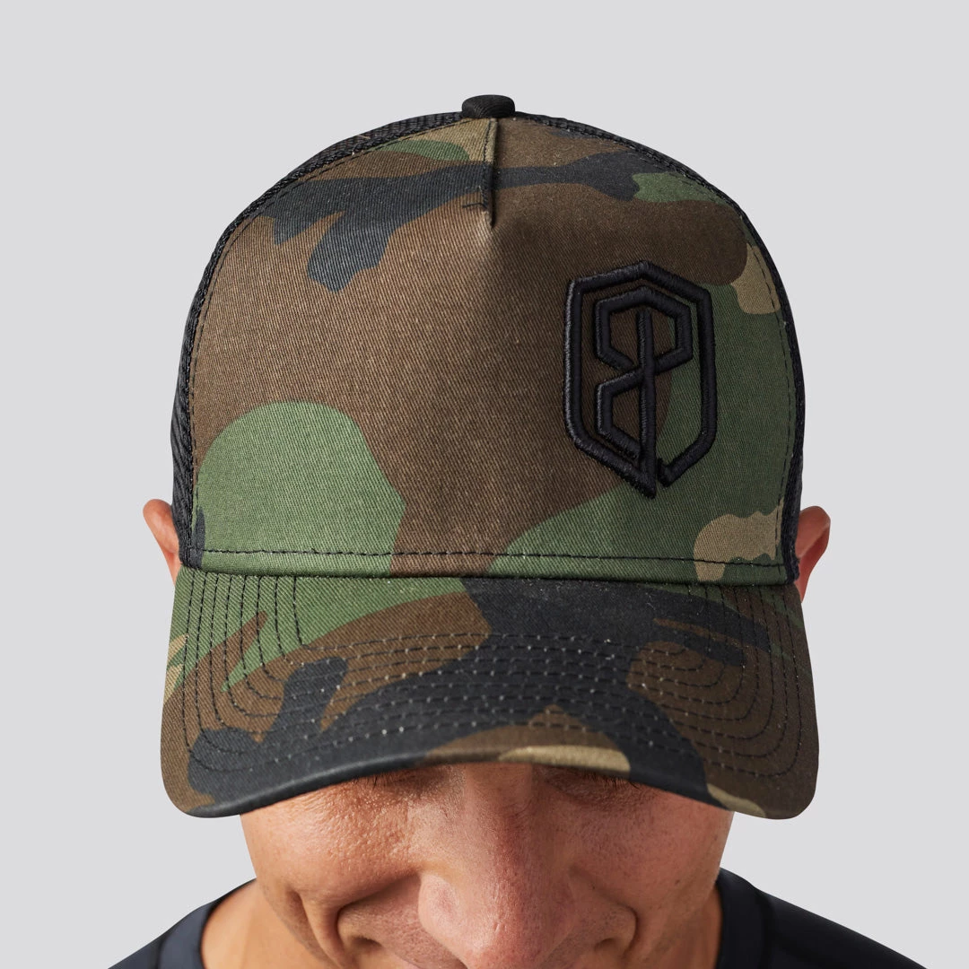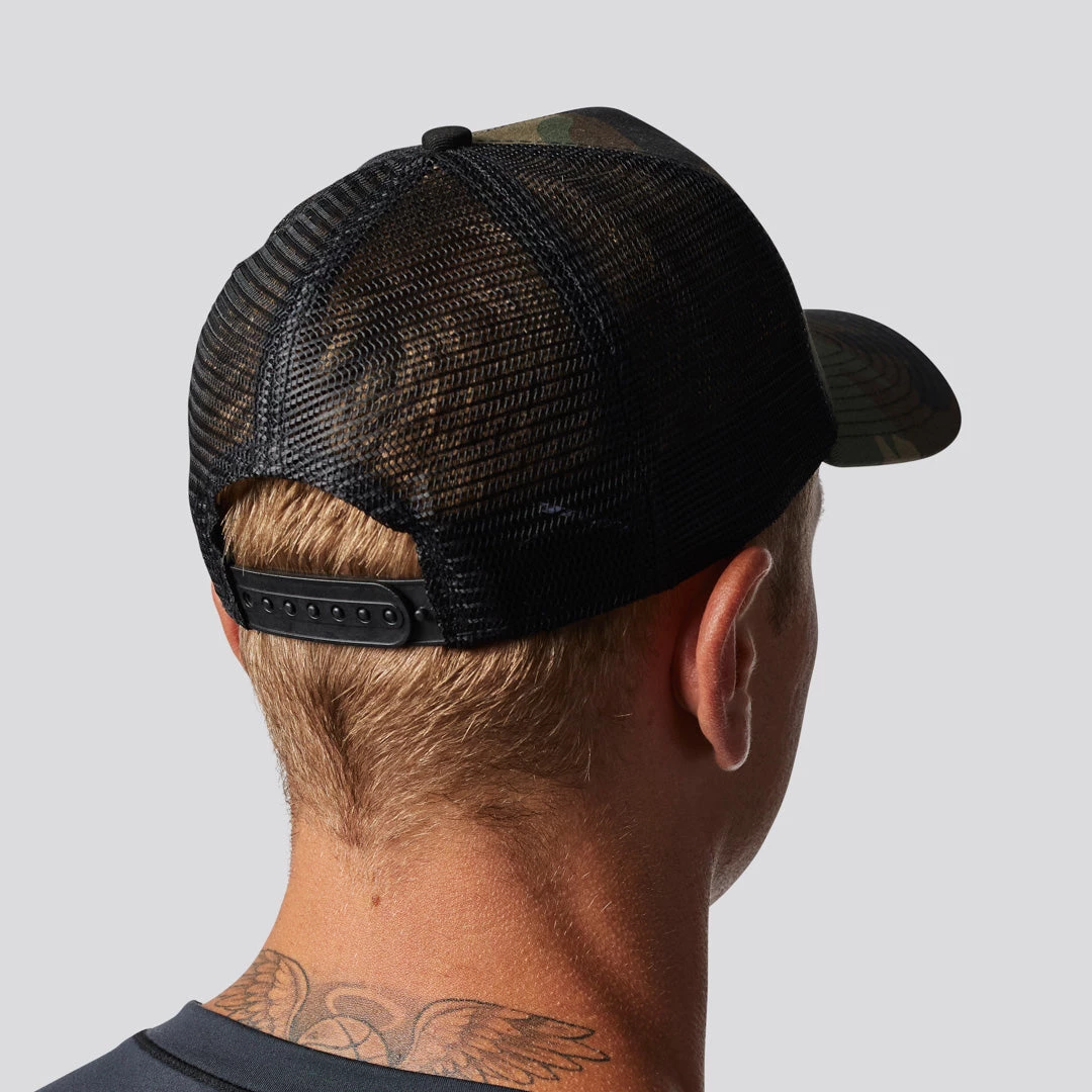 The Born Primitive trucker hat in Camouflage features a 5-panel cap with a camouflage pattern on the front panel and has mesh mid and back panels for superior ventilation and a trend-right snapback closure for an easily adjustable fit.