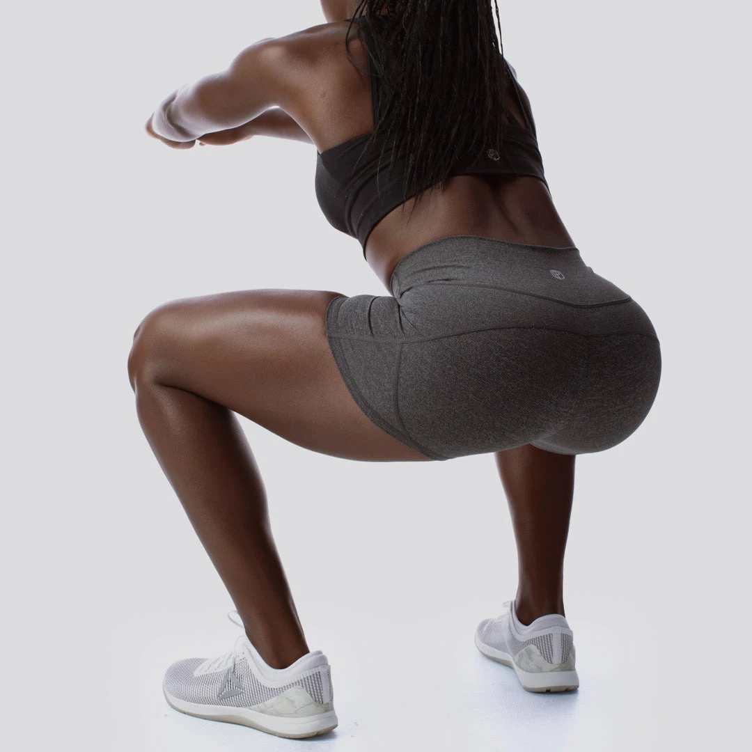 Your New Favorite Booty shorts, now better than ever. We upgraded everyone’s favorite booty shorts by replacing the fabric with a softer, smoother, and stretchier material. These shorts have been made to be more durable and curve-accentuating, feature a high waist and a shorter 2.5” inseam.